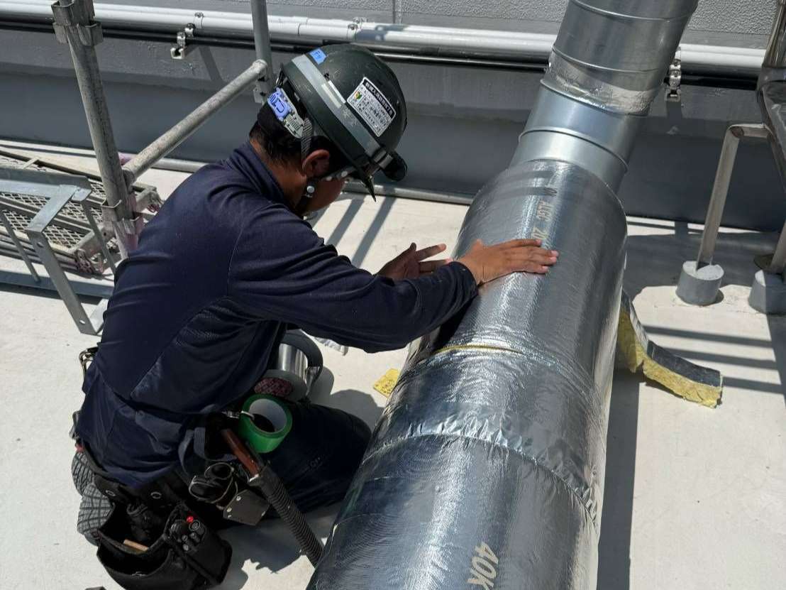 断熱工事は、配管やダクト、タンクなどの設備が外部の温度変化に影響されないよう、断熱材で被覆する工事です。工場やプラント、空調設備などの現場では、温度差による結露やエネルギー損失が発生しやすいため、適切な断熱施工が必要になります。