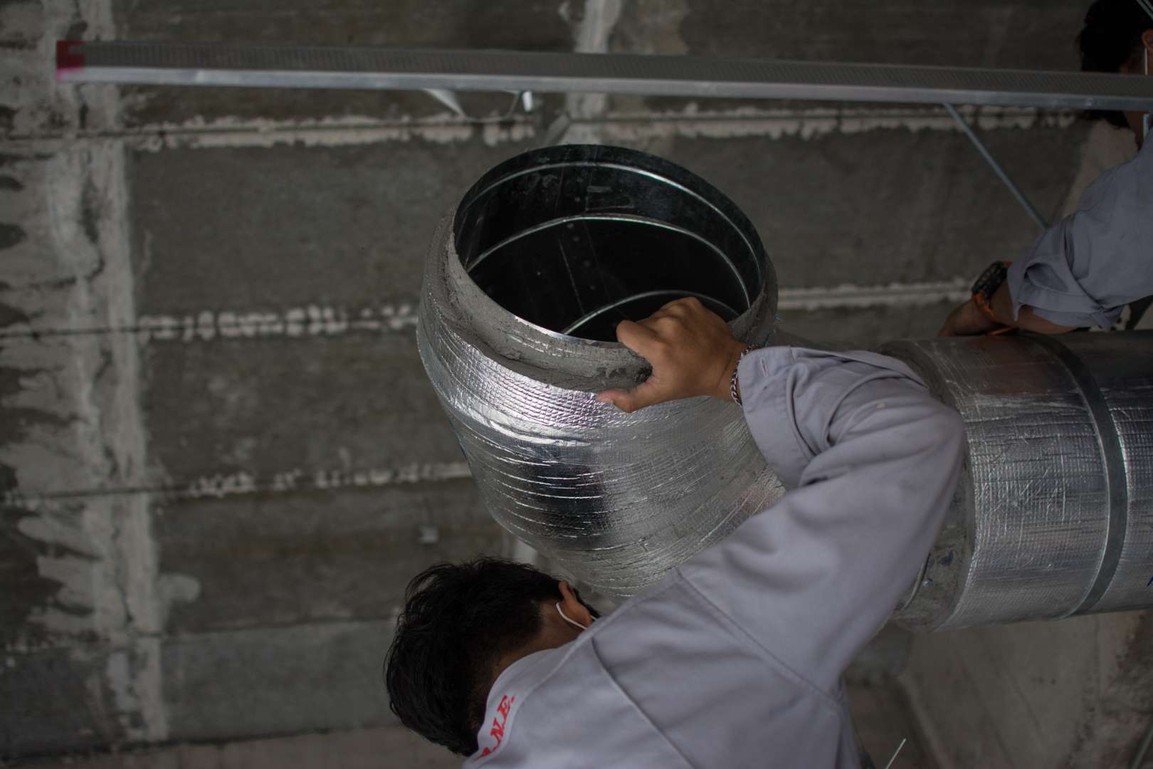 そこで、グラスウールなどの断熱材をダクトに隙間なく巻き付け、外気との温度差をなくす「保温工事」を行います。これにより、結露の発生を未然に防ぎ、建物の寿命を延ばすことができます。