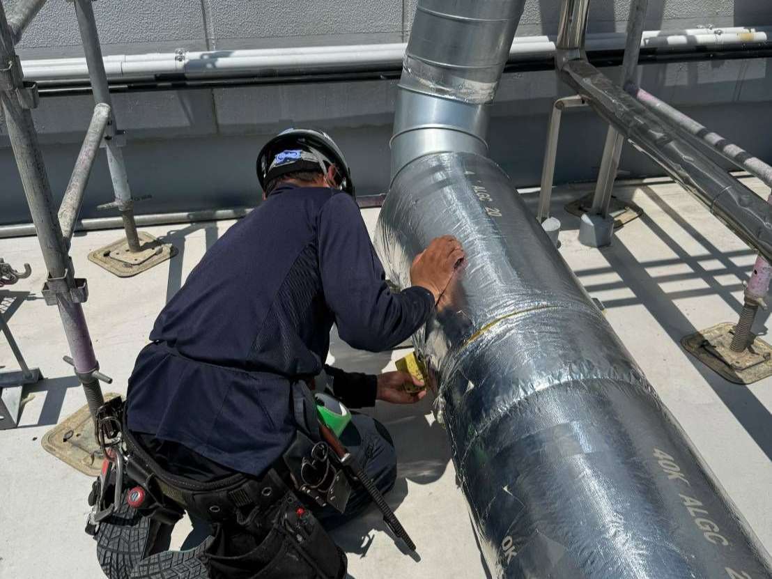 創業から40年以上にわたり培ってきた確かな技術力と、自社工場での板金加工から施工までを一貫して行える対応力を強みに、建物のインフラを安全に守り続けています。当社は、冬場の厳しい寒さから配管を守る凍結防止対策に強く、現場の状況に合わせた最適な保温工事をご提供できるのが特長です。